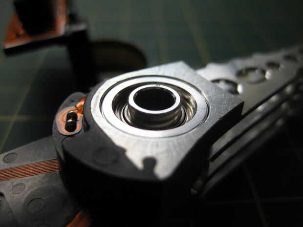 Para el segundo eje usé el rodamiento del brazo de lectura y escritura del disco duro.