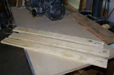 Arrancó tres piezas 2 1/4 pulgadas de ancho.  He hecho las piernas de mi cuadrados 20 pulgadas de largo cada una.  El original en la exposición del museo tiene patas 14 1/2 pulgadas de largo.
