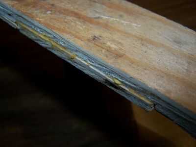 Los lados de las piernas de la Plaza deben ser rectos y lisos.  En la foto ver que el travesaño se extiende más allá de la superficie de una de las piernas de la Plaza.  Quitar la parte que se extiende con un archivo, un cincel o una lijadora eléctrica.  No corte en la pierna de la Plaza.