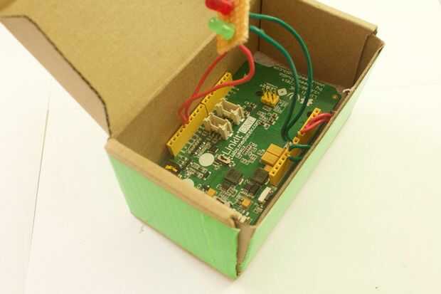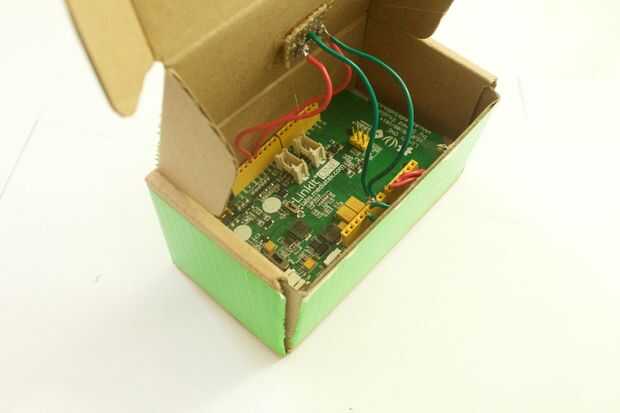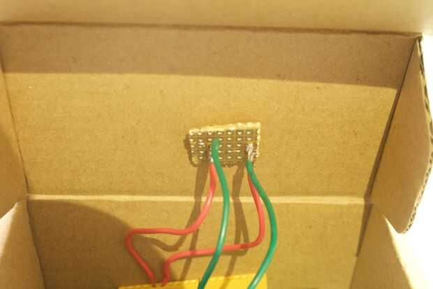 Se encuentra una pequeña tabla de cartón que es lo suficientemente grande como para incluir el microcontrolador que es el mayor componente en la caja.