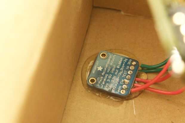 2. pegar el acelerómetro plana en la parte inferior.