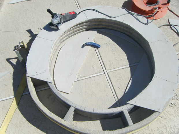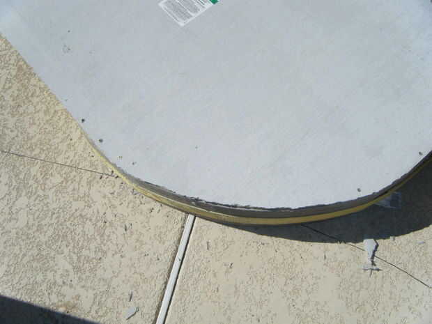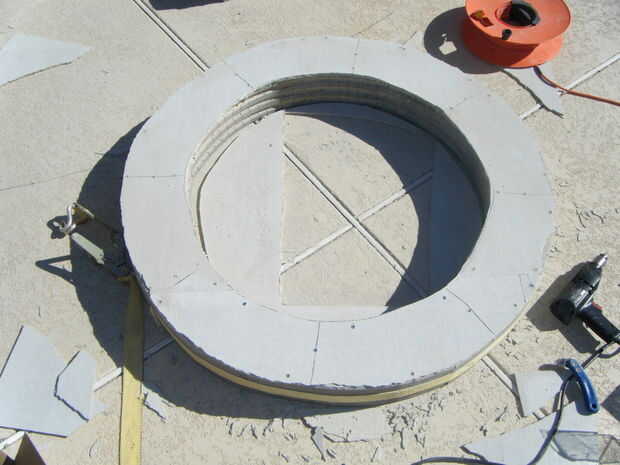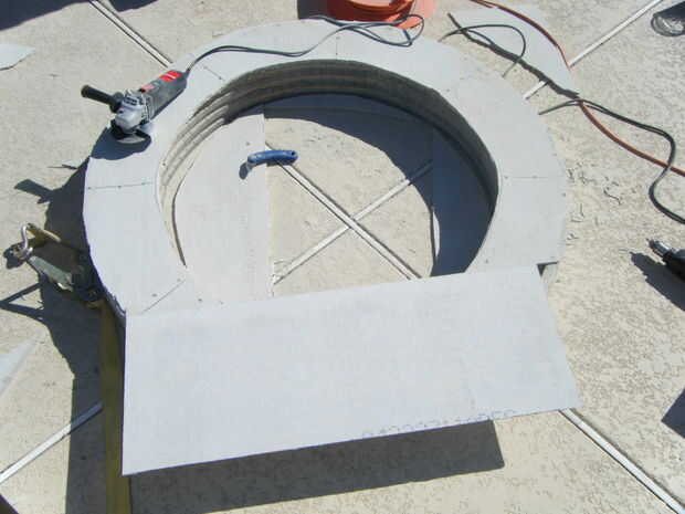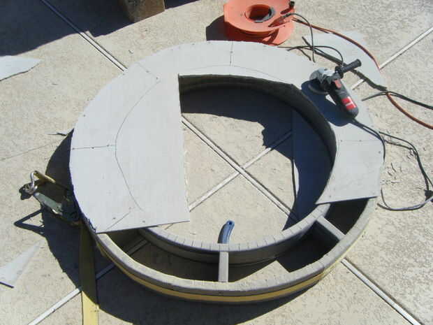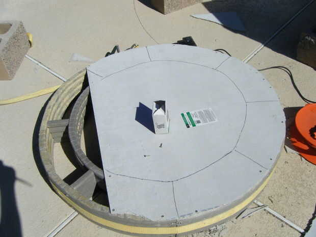 he usado placa cerámica encontrado en cualquier tienda cerca de la zona de ventas de accesorios de baño. Este material se utiliza como placa de soporte en áreas húmedas detrás de azulejos. También se puede utilizar un material de Junta de cemento. Normalmente se encuentra en la misma zona de la tienda y se utiliza para los mismos fines. Comience con un trozo de placa de cerámica y atorníllelo a la parte superior de su marco de madera. Utilice pegamento de construcción al aire libre además de tornillos para una conexión fuerte. Usando una herramienta de puntuación para el tablero de cerámica recorte el exceso alrededor del exterior del círculo. Para ello, sólo cuenta el material con la herramienta y quite las piezas de exceso. Asegúrese de que pegue y atornille la placa de cerámica a los círculos interiores y exteriores junto con los espaciadores para una buena conexión. Antes de que cubre completamente la parte superior del marco, dibujar el contorno del círculo interior sobre placa de cerámica. Utilizando un esmeril cortar el centro de la placa de cerámica por lo que es incluso con el círculo. Una vez que completa, utilice las piezas restantes de la placa de cerámica para cubrir el resto de la parte superior. Está bien que pieza de la placa de cerámica para cubrir completamente la parte superior del marco. Este marco entero se cubrirá en la losa. Use suficiente pegamento y tornillos para fijar la cerámica junta firmemente al marco. Cuando haya terminado debe tener una dona de madera plástico justo por debajo de 4 pies de diámetro con placa de cemento en la parte superior. La última parte de este paso es para asegurarse de que la parte superior de la base esté nivelada. Utilizar cualquier madera disponible y atorníllelo a la parte inferior del marco para hacer la parte superior del nivel de base.