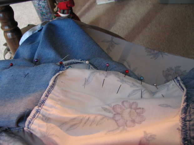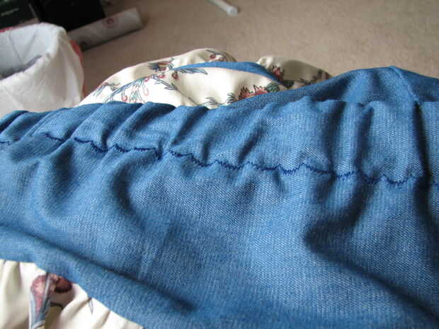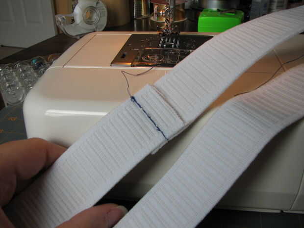 Usted está en la recta final! Agarrar el elástico, se superponen los extremos por mitad de una pulgada, pin si quieres y puntada hacia abajo. Esta parte es un poco complicada. Quería hacer esto por lo que no había un gracioso pedazo de falda elástico en la cadera cuando fue terminado por lo que terminé esta manera alrededor. Plegado sobre la parte superior de la falda en el interior, un poco más largo que el elástico (ahora es el momento para una regla si desea que todas sus niveles idénticos las alturas). Perno de la falda en su lugar, envuelve el elástico y coser la falda * no el elástico *. Usé mi puntada otra vez para esto en vez de arriesgar wonky puntadas 'rectos'.