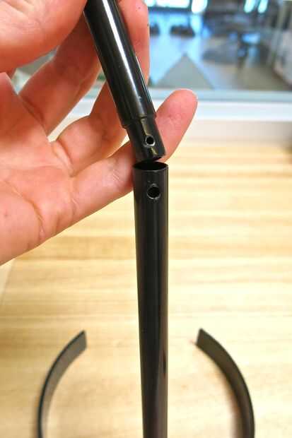 1. Línea de arriba está el orificio del tornillo sobre la pieza ya curvo soporte negro con el agujero en la base de soporte.