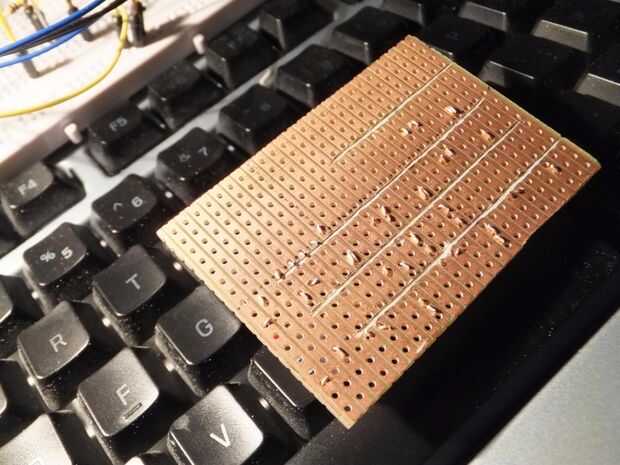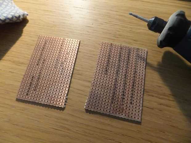 - Utilice una herramienta giratoria con un poco de grabado en pequeño para cortar las pistas de cobre