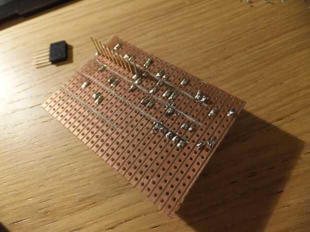 - Añadir el resto de los componentes [transistores y resistencias], empalmes de la soldadura de fusión volver a cuando sea necesario para enderezar y vuelva a colocar