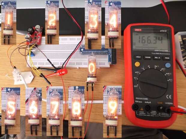 Una vez que exitosamente han probado el módulo de alto voltaje y confirmado 170v, puede pasar pruebas las Nixies. Nixies funcionan de manera similar a los LEDs en que tienen muy poca resistencia una vez iluminada y por tanto debe tener una resistencia de limitación de corriente en serie para controlar el flujo de corriente. Sin una resistencia, una Ondina brillará más brillante de lo que debe, calentarse y 'quemar' muy rápidamente.