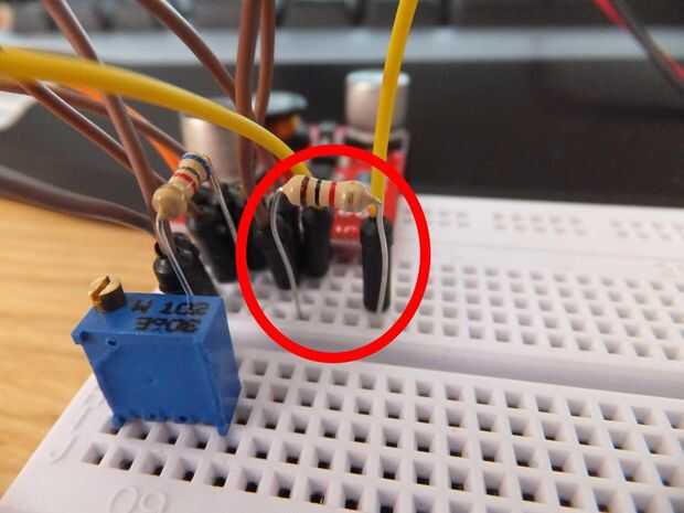 - Conecte el otro extremo de la resistencia de 15 k al ánodo con un cable jumper macho-hembra