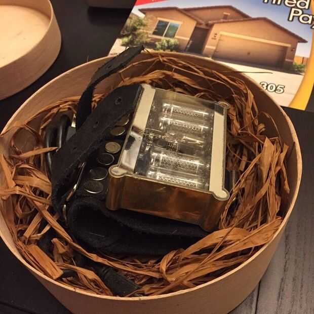 Código "Aetherias secreto" - Steampunk seguro, cerrado, con Neonballs y Nixie Display. Se abre cuando el código es correcto y se da la vuelta. Con Sensor de Handclapping para iniciar la energía!Mis pensamientos eran: un cajón abierto pulsando un