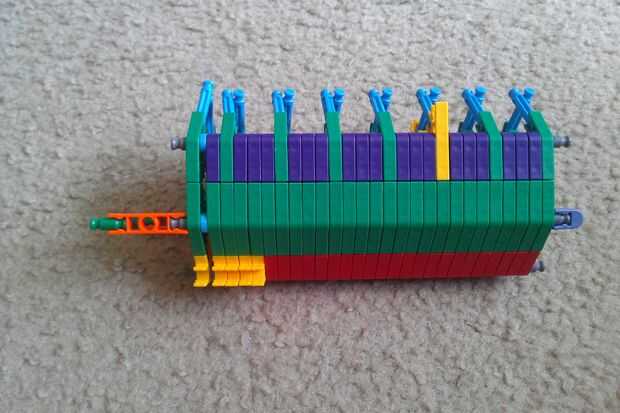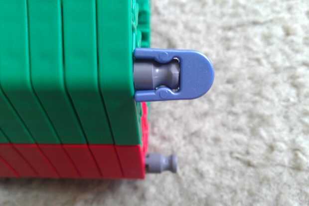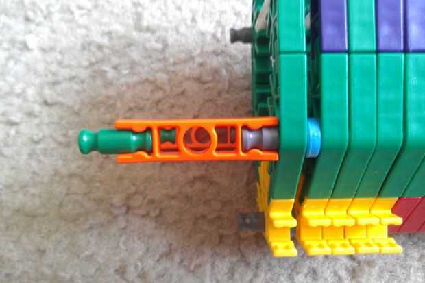 Tapas agregar azul a la mano protección Asamblea. También, agregar conectores naranja y barras verdes al otro extremo de la Asamblea, como se muestra.