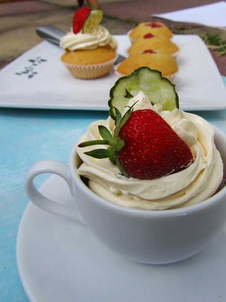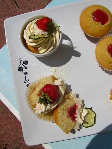Ahora que usted ha todos ha educado, vamos a llegar a la cocción! Cupcakes de estos Pimm tienen una base de esponja de limón, relleno con puré de fresa, coronada por un remolino de crema de menta pepino, acompañado con una fresa fresca y una rebanada de pepino confitada y por supuesto hay que algunos toques extras de Pimm añadido en el camino.