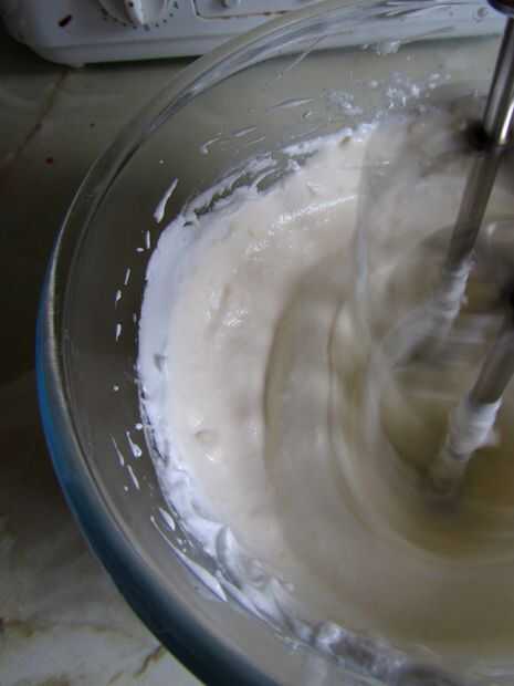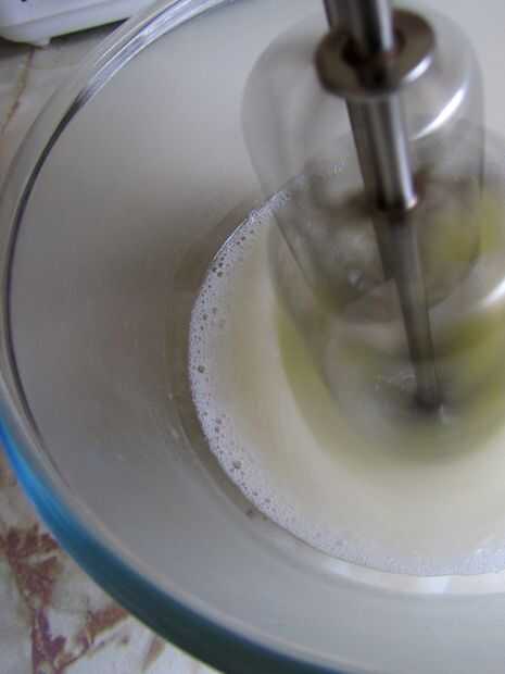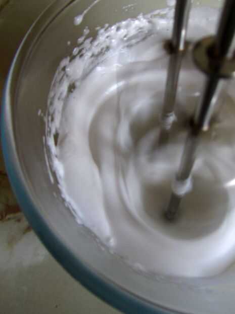 Ahora Vierta el jarabe en un recipiente limpio y conseguir vencer. Necesita obtener este derecho hasta el pico rígido, donde la mezcla es brillante y lisa y se levanta orgullosa cuando quite la bata. Cuando se formen picos puede comenzar agregando la mantequilla.