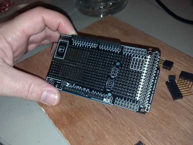 Tengo protoshields un par poner todo, pero necesitaba algo que sobresalga más allá del final de la pantalla LCD y que me permitan añadir algunas características adicionales, así que compré este protoshield más largo para un tablero de Mega. Por desgracia, era $15 y había utilizado algunos de los encabezados y uno de los botones que vienen con él. Habría sido más barato comprar este pelado proto board y un conjunto de R3 apilable encabezados por el precio del kit completo.