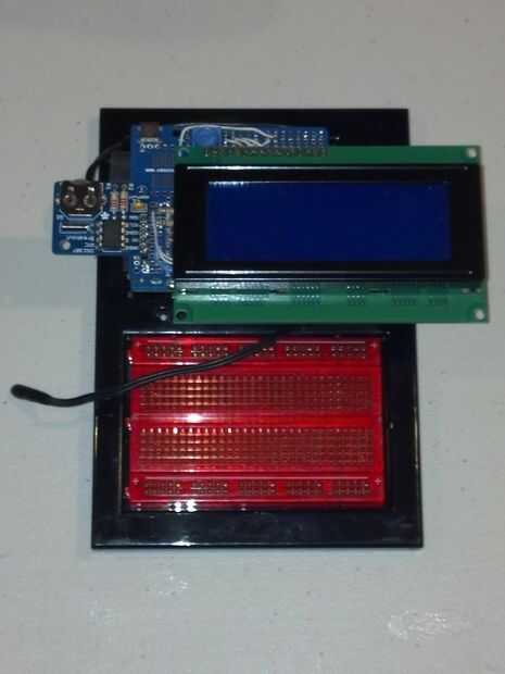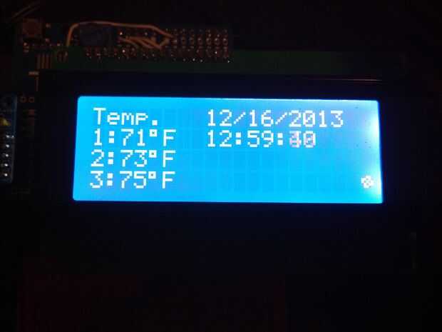 Compré una pantalla LCD serial (no un escudo así que puedo cambiar las clavijas a todo lo que necesito) y un Reloj de tiempo Real breakout Junta kit. Combiné la pantalla LCD, el módulo RTC y algunos encabezados para los termistores en un tiempo y protectores de pantalla de la temperatura.