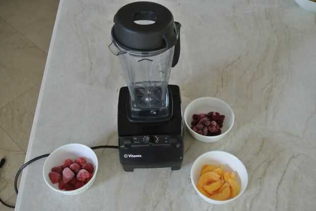 -Congelado de la fruta está en su mejor momento ligeramente descongelada antes de mezclado.