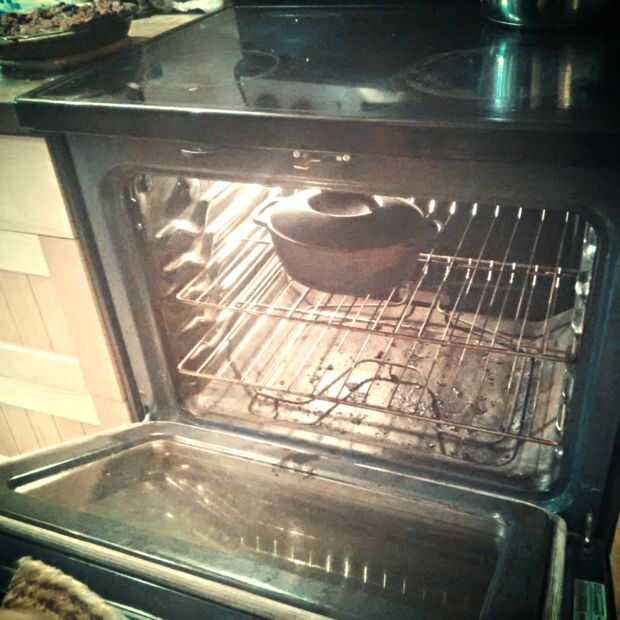 Poner el hierro fundido pote (con tapa) y precalentar el horno hasta de 440° f (225° Celcius).