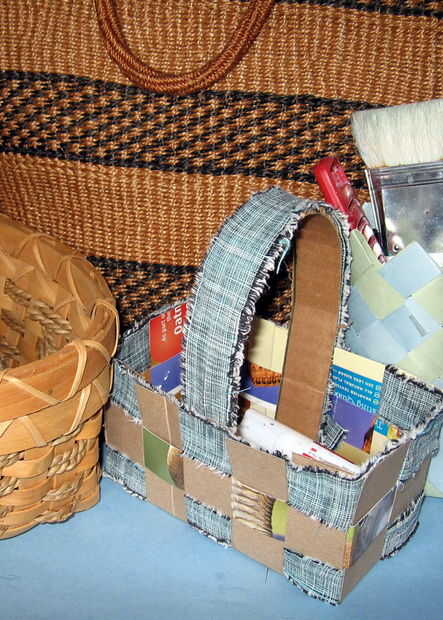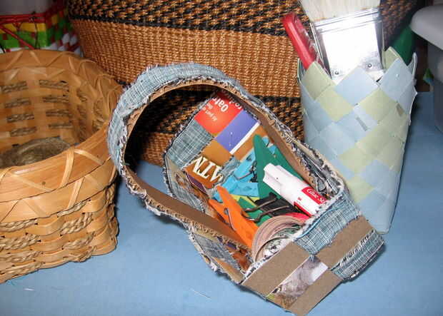 Yo también soy profesora de arte y la frase "con especialización en cestería subacuática" o algo parecido me conduce loco!! Sobre todo porque hacer cestos no es tan fácil como implica la frase. Enseño a mis alumnos cómo tejer papel, hilo y también canastas. Esta cesta es una modificación de lo que enseñó mi 6 º y 7 º grado con desechos y materiales "sin presupuesto".