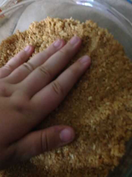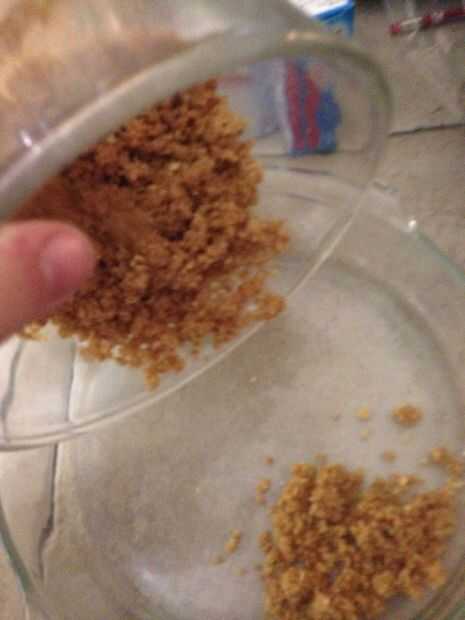 Viene todo lo que necesitas hacer es Vierta la mezcla desmenuzable en su bandeja deseada y pat hacia abajo.