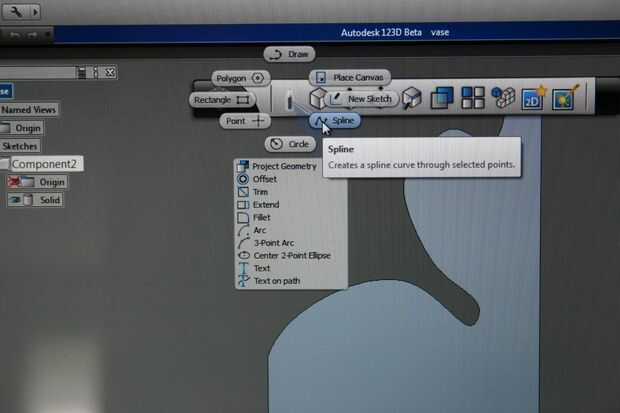 En Autodesk 123d, creó una "caja", 100mm 125 mm por 36mm de alto.  Luego utilicé la herramienta "spline" a mis puntos de la curva superior de la entrada.