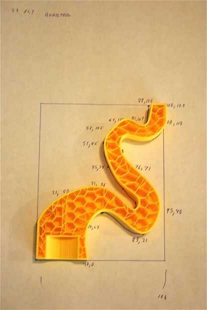 Envió el archivo a la impresora.  Esta foto muestra el interior de la vasija y el "match" con el dibujo original.