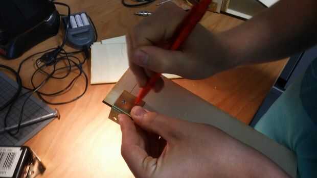ein Preiswertes Brett Leimholz aus dem Baumarkt für unter 3 €, 4 Gummiefüße, 4 für Schrauben de pies, ein paar Päckchen Pedal montada, selbstklebende und KlettverschlüssePaso 1: der de verschrauben pies es empfiehlt sich die Löcher vorzubohren., das