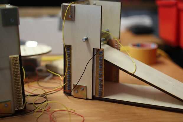 Ahora puede soldar todas las resistencias de las tarjetas de la tira, por lo que bajará la tensión entre las diferentes tiras. También debe soldar dos cables (negro y rojo) a las juntas. Utilizamos un cable amarillo (no soldado en la imagen) para los contactos del limpiaparabrisas.