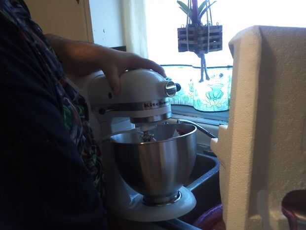 Retire la herramienta mezcla. Reflexionar cuidadosamente sobre las muchas horas de mezcla a mano que este regalo de los dioses le ahorrará.