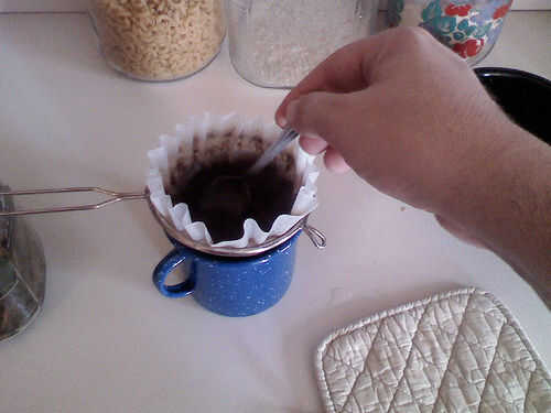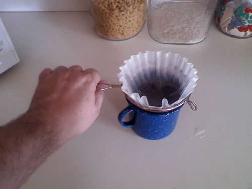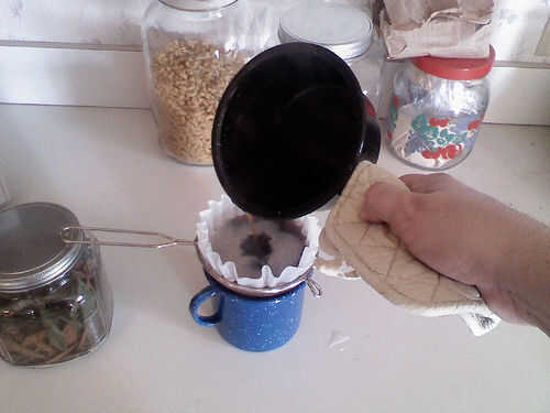 yo me gasto el perro de fin de semana en casa de mi hermana-en-ley. Sin saberlo yo, ella había tomado su cafetera a lo largo. Esto me dejó con un poco de un dilema cuando llegó la hora de mi café de la mañana. Documenté mi solución en esta presentación.