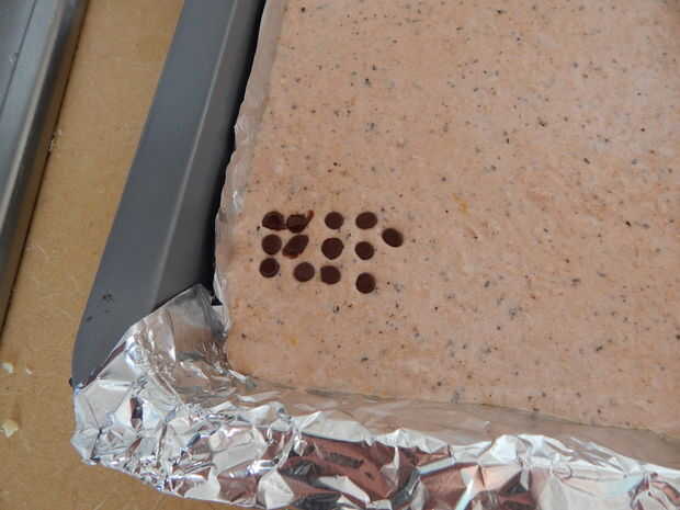 3. chips de chocloate prensa (opcional) en la parte superior un poco de extra chocolate (las fichas empezar a fundirse para que no intente moverlos una vez que están en) (imagen 2)