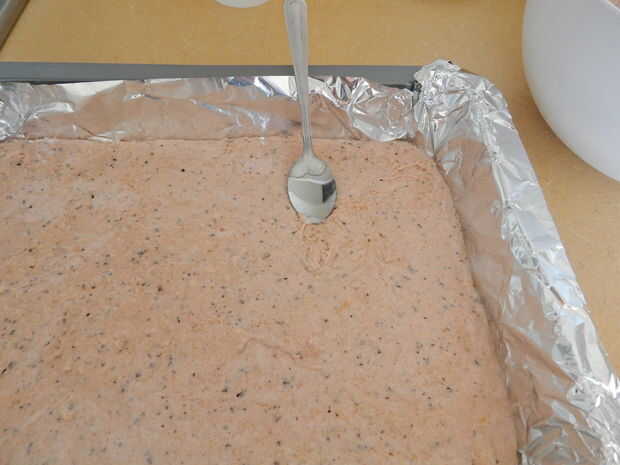 2. aplicar aceite a la parte posterior de la cuchara e incluso la mezcla hacia fuera con movimientos suaves (puede que necesite la cuchara de aceite un par de veces para evitar que se pegue) (imagen 1)