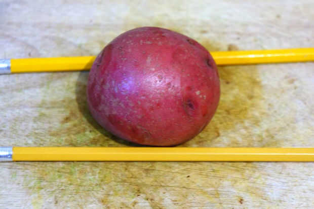 Coloque 2 lápices sobre la mesa y establecer la patata encima de ellos.