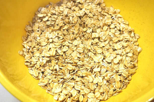 Añadir galletas machacadas (o migas de pan y harina o huevo o compota de manzana), a la taza.