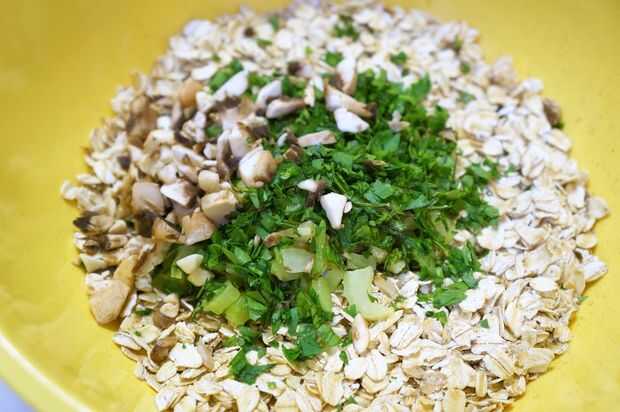 Añadir Sauteed cebolla y apio, perejil picado y salsa de soja a esta mezcla y revuelva.