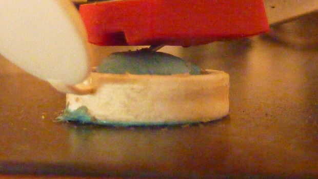 Puse una pequeña cantidad en una cubierta de plástico del tornillo y viró a la cubierta de la mesa giratoria en un lugar en que convenientemente puede fijar la aguja.