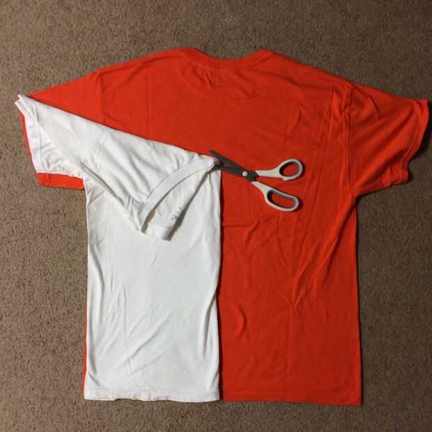 Terminado el corte, la parte superior toda de la camisa debe estar abierta. Habrán quitado el cuello, la parte superior de los hombros y la parte superior de las mangas.