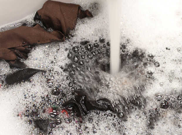 Ahora, si no ya tienes, colóquese los guantes! Mojar su pañuelo en el agua y frote la lejía con los guantes para retirar el gel. Cuanto más rápido usted lavar, menos probable eres para blanquear otras áreas que no desea.