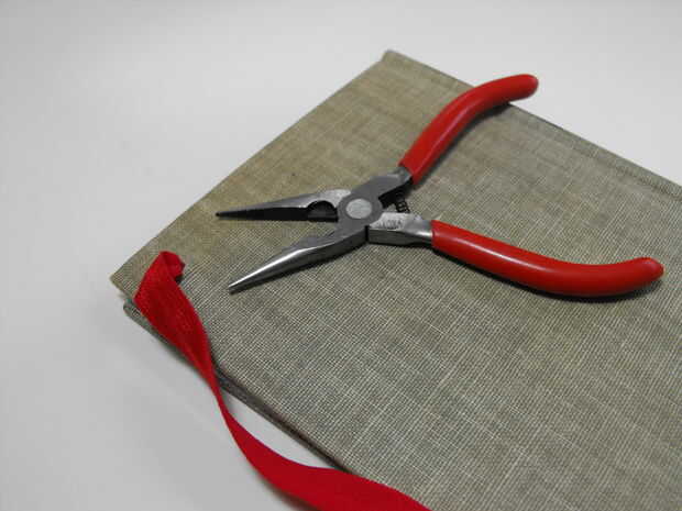 Utilizar el arte del pegamento para unir los extremos del elástico en el interior de la contraportada.