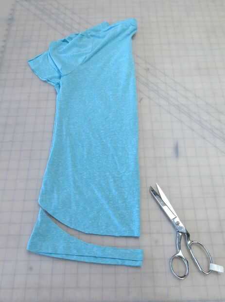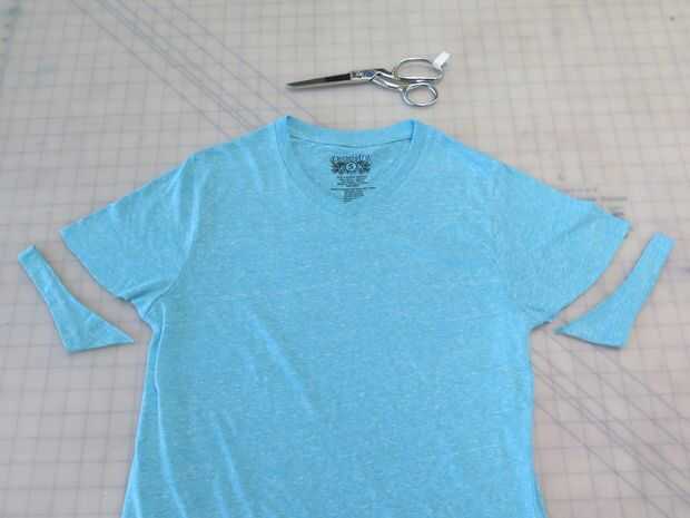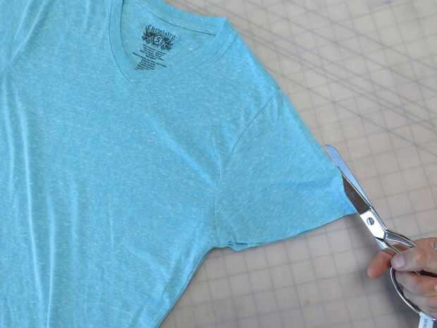 Primero recortan las mangas, cortar desde justo por debajo del punto bajo el brazo para arriba, ajuste de dobladillo de las mangas.