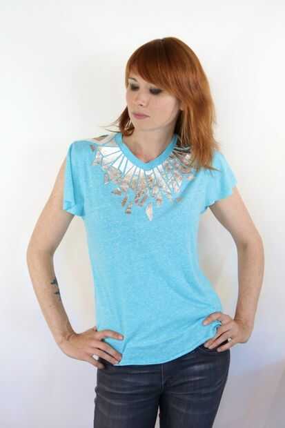 Estaba bastante contento con mi nueva camiseta brillante. La plata cuero realmente atrapa la luz muy bien y definitivamente transforma una simple camiseta en una prenda mucho más emocionante.