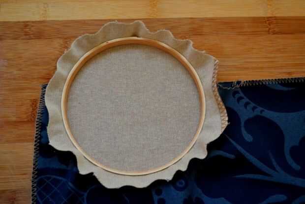 Siga el borde del aro del bordado, asegurándose de que tiene una asignación de pegar de aproximadamente 1/2-3/4 pulgadas desde el borde del aro.