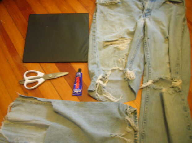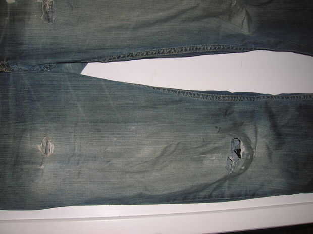 1 par de pantalones vaqueros muy viejos que están más allá de la reparación.