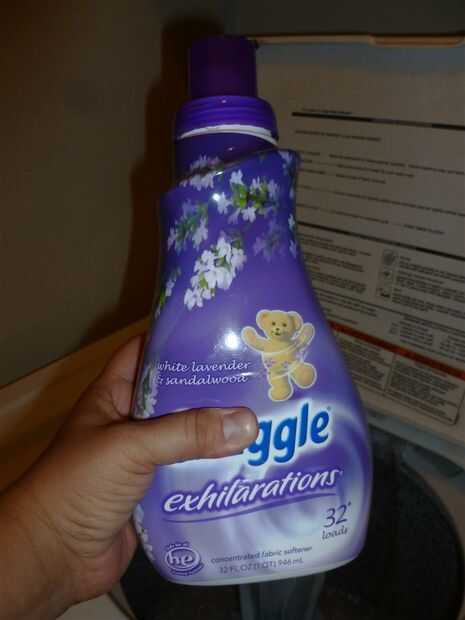 (3) he añadido lleno mitad una tapa de suavizante de telas (principalmente porque mi hijo se quejaba sobre la rigidez de la camisa pintada)