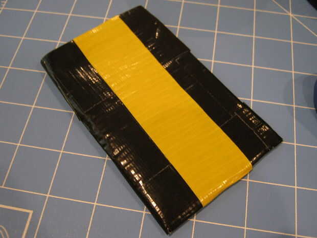 Cubren la cosa entera con cinta aislante (no la apertura del curso). Si vas a hacer una especie de raya de carreras de diseño como el mío, hacer tu color base primero. Luego cortar una pulgada y un cuarto tira de su color de la raya y en el después.