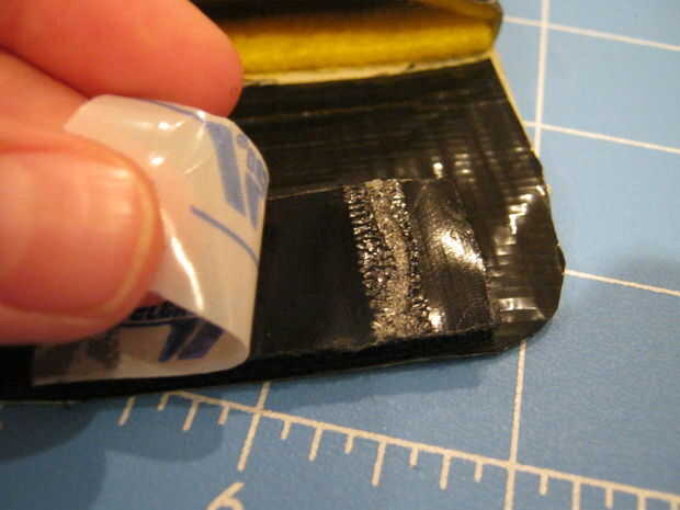 Cortar una tira de velcro (ambas mitades) que son un poco más de una pulgada de largo. Desprenda el lado pegajoso de una de ellas y colocar en la solapa. Entonces, después de aplicar presión para el lugar un poco, la otra mitad en la parte superior. Desprenda el lado pegajoso y cierre la tapa donde usted la quiere cerca. Aplique presión.