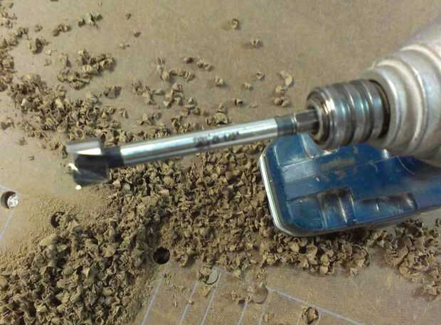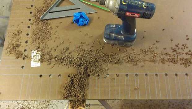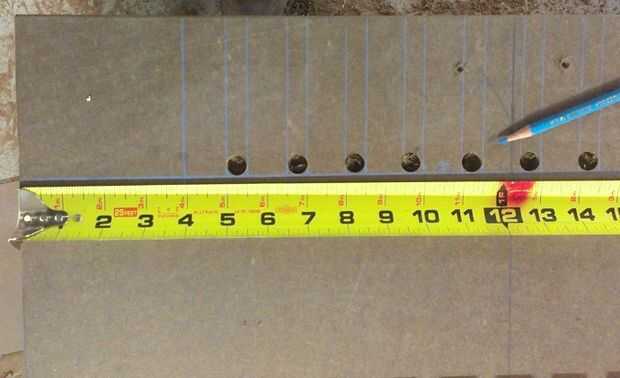 • tomar la 1/2" broca y taladro un orificio en el extremo de cada 1/2" marca como en las fotos.