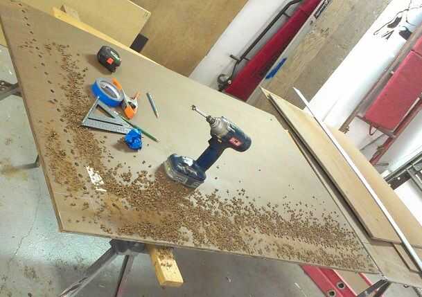 • Corte el masonite 2 piezas de 30 x 50 y 1 pieza 12 x 60