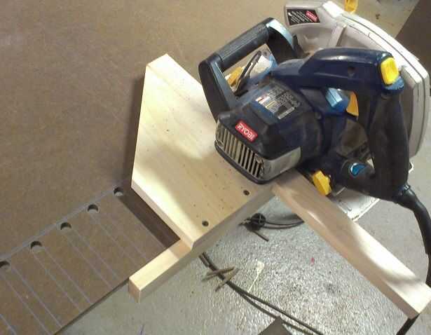 • tomar la raspadura 1 x y hacer una plantilla que se desliza hacia abajo el masonite sino que se extiende hacia fuera para mantener recta la espalda de la sierra.