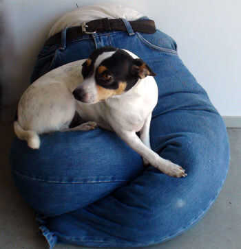 Decidí yo los pantalones vaqueros de la materia y utilizar como una cama de perro!