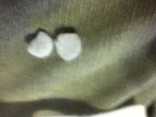 Cortar el blanco se sentía en los pequeños círculos (un poco más grande entonces los botones).  Luego pegue los círculos semi pequeños a la mitad superior del cuerpo fantasma.  Luego pegue los botones para los círculos blancos.