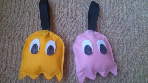 Pac-Man y sus fantasmas! Esto comenzó como un proyecto a ganchillo a Pac-Man. Entonces esto ampliado a hacer los fantasmas, luego a hacer fantasmas con ojos movibles y por último a añadir en las cubiertas para hacer los fantasmas cambia a azul oscuro